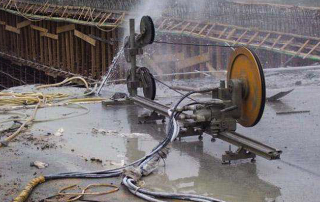 混凝土切開是指選用液壓墻鋸機、電動碟鋸機、水鉆或許馬路切開機等東西對混凝土構件、墻體、路面等進行切開的施工技能,它具有切開才能強,靜力無損,功率高,選用水冷卻,無施工粉塵等特色 :切開撤除:繩鋸切開是金剛石繩子在液壓馬達驅動下繞被切開物高速跋涉研磨然后完結切開作業?! ∵\用繩鋸設備對混凝土切開拆 除···